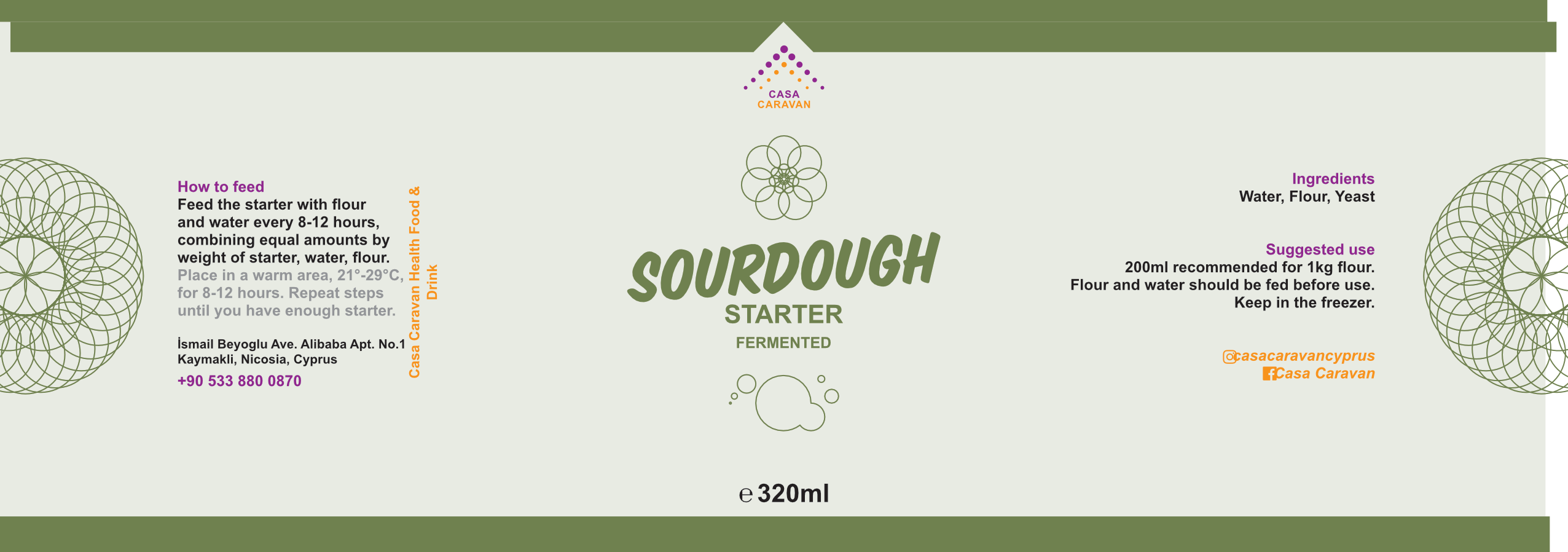 In the jar, you’ll receive a portion of this living culture. To keep it active, simply feed it equal parts flour and water by weight (1:1 ratio). For a beautiful sourdough loaf, we recommend using about 200g of starter (the amount we’re sending you) per 1000g of flour.